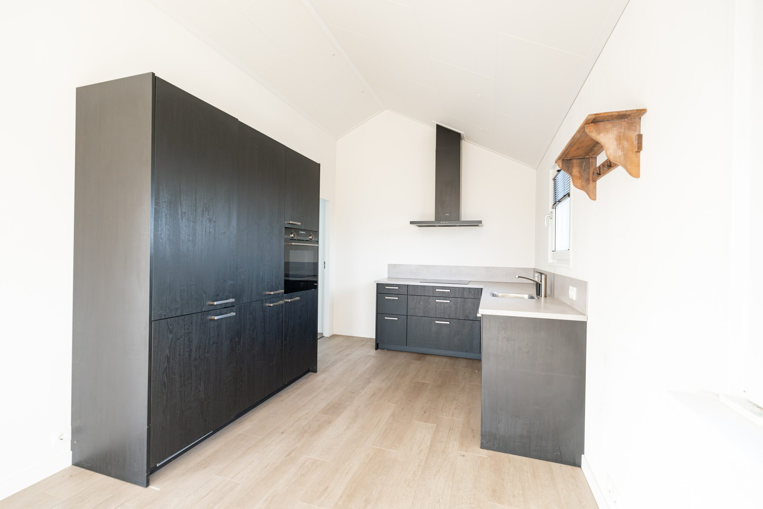 • Het deel met schuin dak is afgewerkt met steenstrips