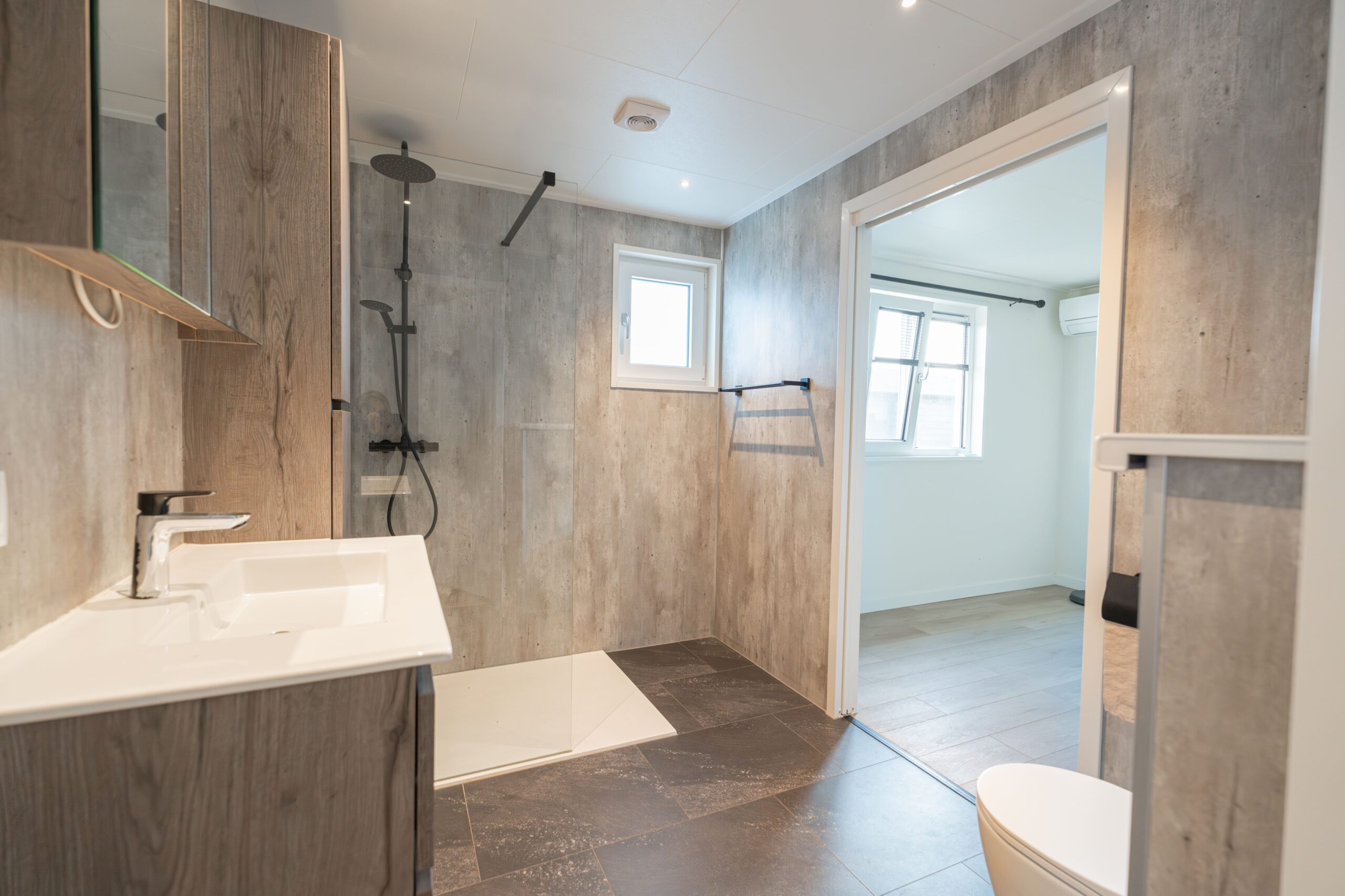 • Badkamer voorzien van inloopdouche, wastafel en toilet
