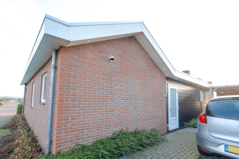Deze woning van circa 80 m² is 5 jaar oud en biedt een comfortabele en moderne leefomgeving. De woning is uitgevoerd in een L-vorm, waarbij één gedeelte is voorzien van een schuin dak en het andere gedeelte van een plat dak. Indeling