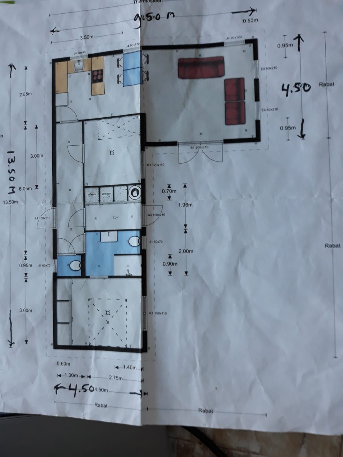 • Bijkeuken met inbouwkast en aansluitingen voor wasmachine en droger