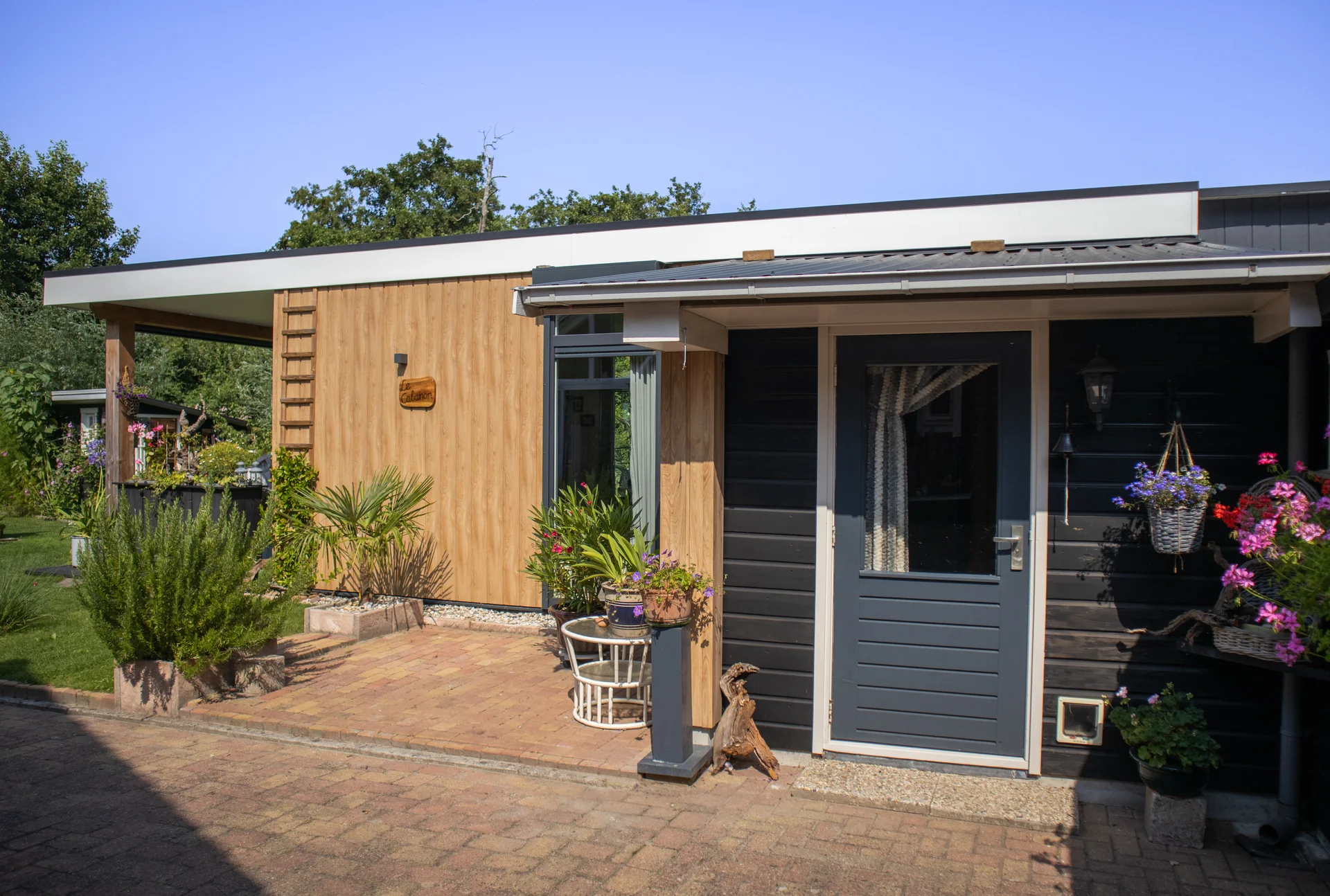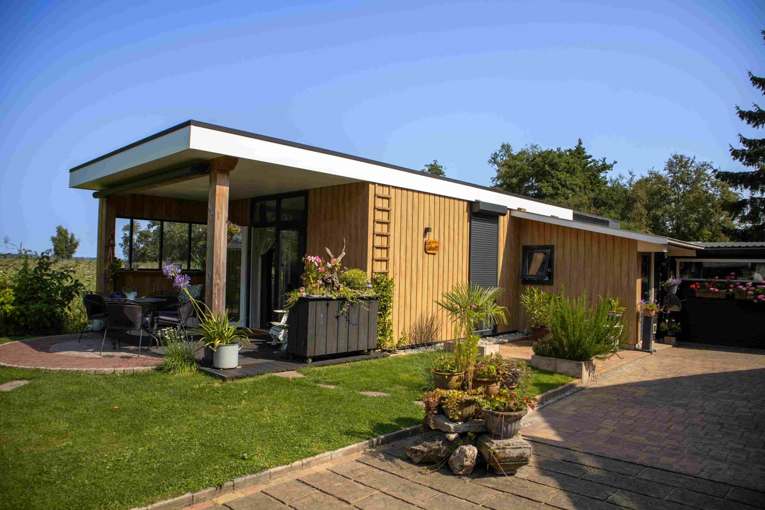 In Wanneperveen, Overijssel, staat deze prachtige uitvoering van ons model de Amalia. De woning is voorzien van een woonkamer met grote een open keuken. De woning heeft 1 slaapkamer en 1 badkamer. De mantelzorgwoning in Wanneperveen is voorzien van een prachtige veranda en heeft gevelbekleding in turner oak met antraciet. Plan een bezichtiging in om de mantelzorgwoning in Wanneperveen in het echt te kunnen ervaren.