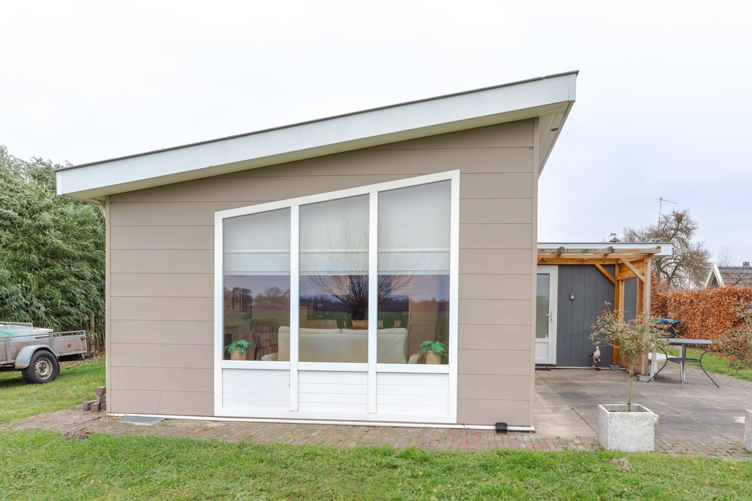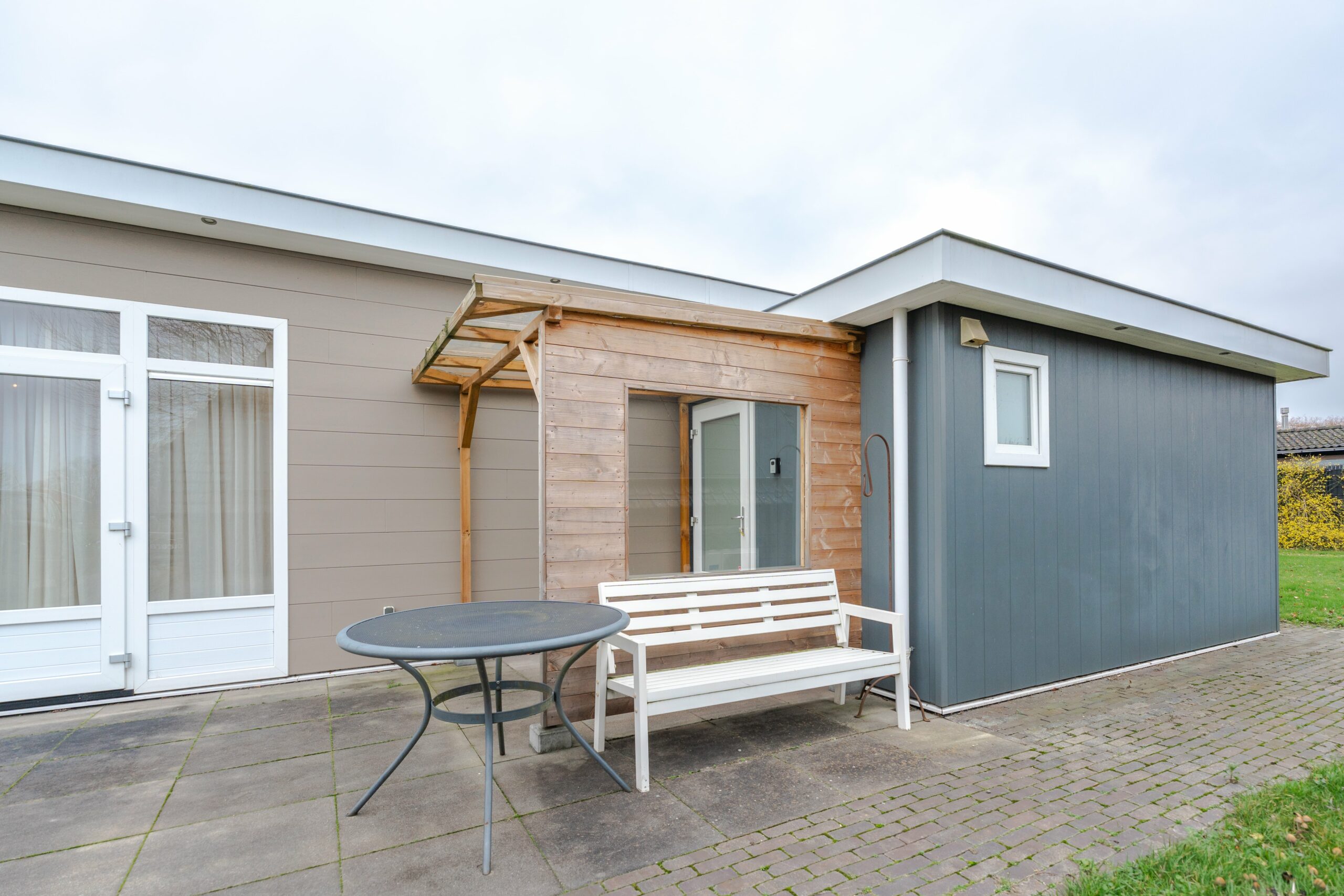 Deze woning van circa 52 m² is 8 jaar oud en biedt een comfortabele en moderne leefomgeving. De woning is uitgevoerd in een L-vorm, waarbij één gedeelte is voorzien van een lessenaar dak en het andere gedeelte van een plat dak. De verkoopprijs is € 65.000.